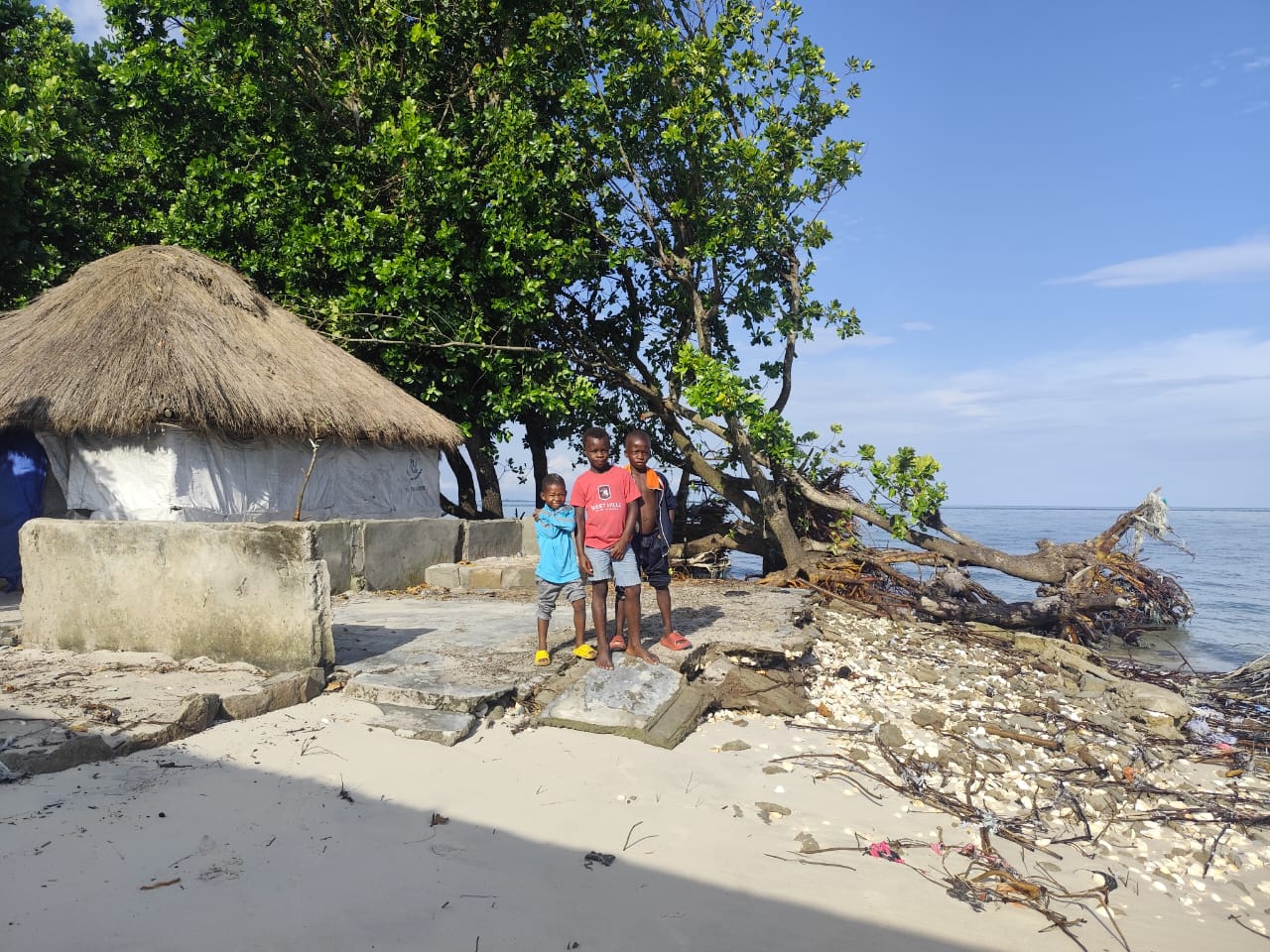 Outside, they play football on what little land remains, pointing to the waves where their field once stood. “That was our football ground,” one boy said. “Now the sea has taken it.”